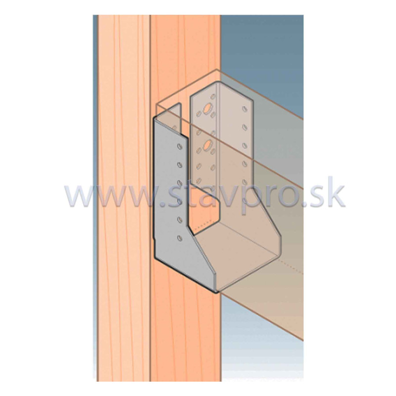 Použitie: Uzatvorené trámové papuče zahnuté dovnútra umožňujú pripevniť trám v prípade obmedzeného priestoru, zvlášť na úzkych stĺpoch. Okrem toho čiastočné prekrytie papuče medzi spojenými časťami poskytuje lepší vizuálny efekt. Vyrábané v niekoľkých desiatkach rozmerov, podľa priemerov trámov dostupných na trhu. Dodatočné veľké priemery otvorov spôsobujú, že je možné ich používať aj pri pripevňovaní hrád do betónovej steny. Materiál: DX51D + Z275 Hrúbka: 2,0mm Pripevnenie: ANCHOR tesárske klince ø4; Skrutky do dreva ø10; Skrutky ø10; Kotvy do betónu M10.