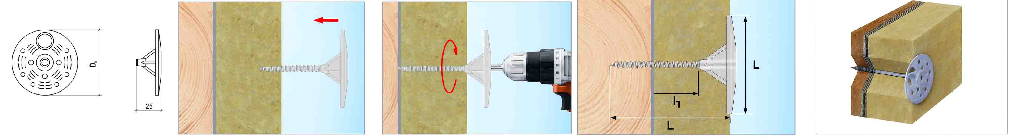 Dotláčací tanierik TD a TDP je špeciálny upevňovací prvok na spoľahlivé kotvenie tepelných izolácií (polystyrén, minerálna vlna) do dreva, OSB, vláknocementu alebo oceľového plechu v ETICS systémoch. Dostupné v priemeroch 60 mm a 90 mm. Súčasťou je zátka na ochranu skrutky a estetické zakrytie.
