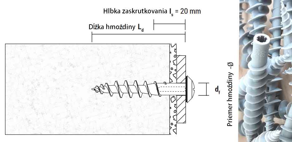 • Zaskrutkujte priamo do izolácie bez predvŕtania (ak omietka ≤ 7 mm).