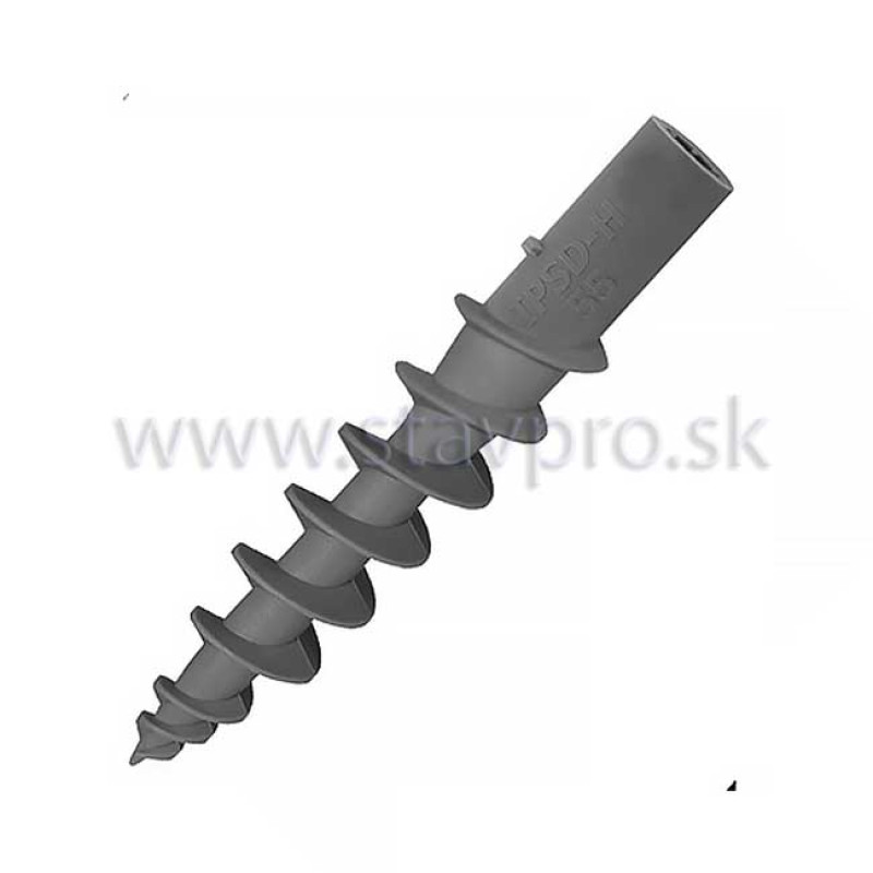 Hmoždinka do izolačných materiálov  VDP-B je krátka špeciálna hmoždinka bez hlavy navrhnutá na priame upevnenie do drevovláknitých izolačných dosiek a obvodovej izolácie. Ideálna pre priame upevnenie bez tepelného mosta, napríklad stenových spojovacích profilov, plechov, soklových líšt, krytov ríms, detektorov pohybu, osvetlenia či značiek. Hmoždinka sa používa spolu so strechárskou skrutkou PLS TX Ø 4,5 mm a jej vnútorná geometria umožňuje ľahké zaskrutkovanie. Vďaka pohonu Torx (TX25) je možné ju zaskrutkovať alebo odskrutkovať z izolácie, pričom ostrý závrtný hrot eliminuje potrebu predvŕtania do omietky (do 7 mm). Pri demontáži zostáva v izolácii len malý otvor. Hodí sa pre hrúbky izolácií od 60 mm.