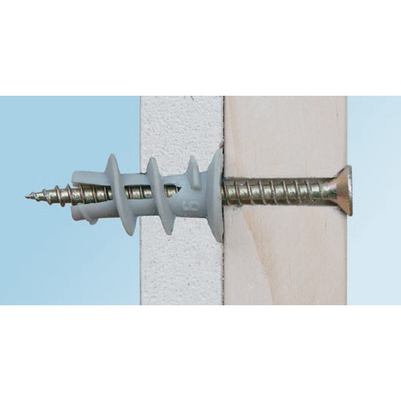 Použitie do sadrokartónu. Hmoždinka sa pomocou montážneho prípravku zareže do sadrokartónovej dosky.