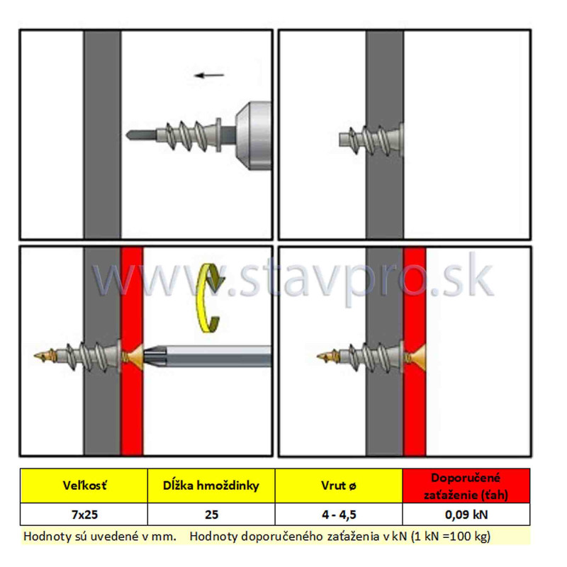 Materiál sa upevní pomocou skrutky ø4-4,5mm. Pri odbere celého balenia 100 ks, montážny nástroj zdarma.