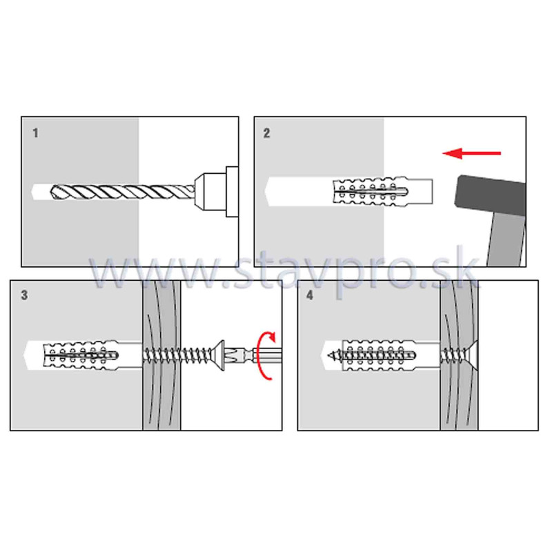 iba natĺcť. Pri aplikácii do ostatných materiálov je nutné tieto predvŕtať.