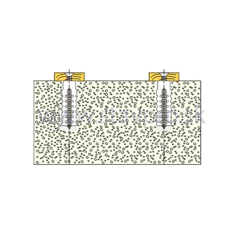 Hmoždinka sa používa pri upevňovaní do dutej tehly aj plných materiálov. V prípade montáže do pórobetónu je možné hmoždinku