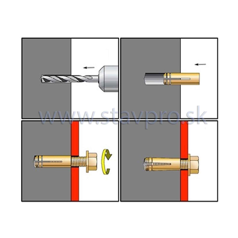 Výhody: odolná proti korózii, ohňovzdorná, malá hĺbka vŕtania. Použitie: betón, plná tehla, kameň, drevo.