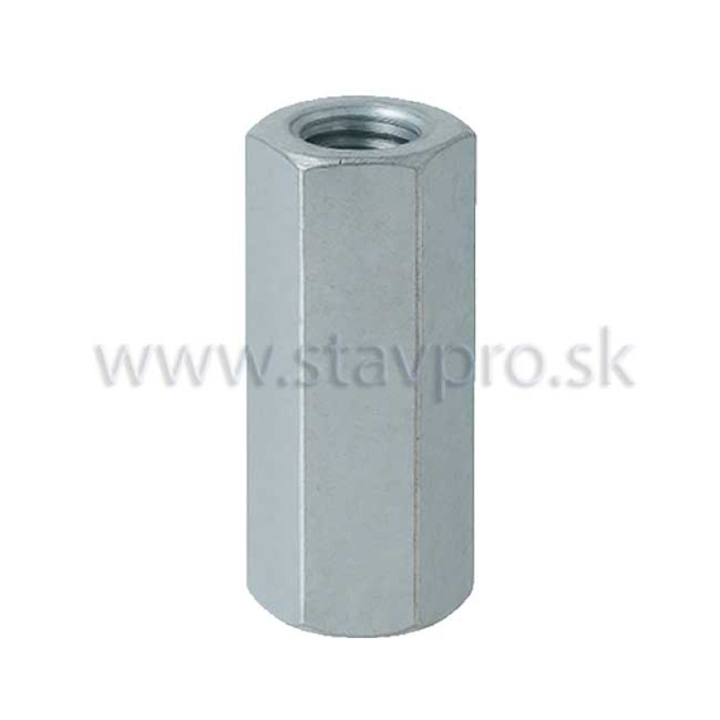 Matica predĺžená šesťhranná DIN 6334 Pozinkovaná je spojovací materiál určený na spájanie závitových tyčí, často využívaný pri montáži vzduchotechniky, v drevárskom a nábytkárskom priemysle. Jej dĺžka je trojnásobok priemeru závitu (3d), čo umožňuje pevné a spoľahlivé spojenie.