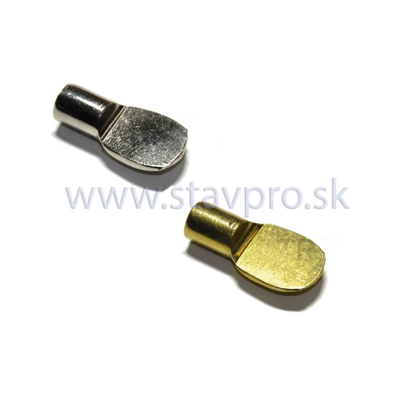 Policová podperka s ploškou je kovový spojovací prvok určený na upevnenie políc v nábytkových konštrukciách, ako sú skrine, regály, knižnice alebo kuchynské linky. Skladá sa z valcového čípku, ktorý sa zasúva do predvŕtaného otvoru v bočnej stene nábytku, a plochej nosnej časti, ktorá podopiera drevené, laminátové alebo sklenené police. Tieto podperky sú dostupné v dvoch rozmeroch: 5x16 mm (priemer čípku 5 mm, celková dĺžka 16 mm) a 7x27 mm (priemer čípku 7 mm, celková dĺžka 27 mm). Ponúkajú sa v dvoch povrchových úpravách: mosadz (zlatý vzhľad) a poniklované prevedenie (strieborný vzhľad). Obe úpravy poskytujú odolnosť proti korózii a estetický vzhľad, vhodný pre interiérové použitie. Podperky sú nenápadné a zaisťujú stabilnú oporu pre police rôznych hrúbok.