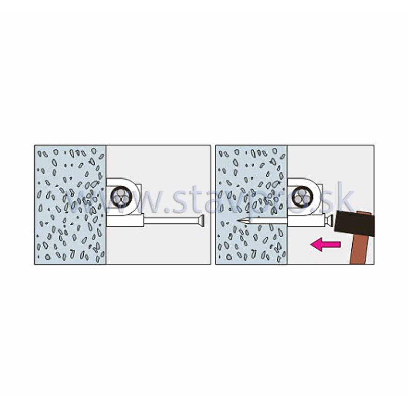 - Upevnenie: Zatĺkanie do predvŕtaného otvoru Ø 6 mm