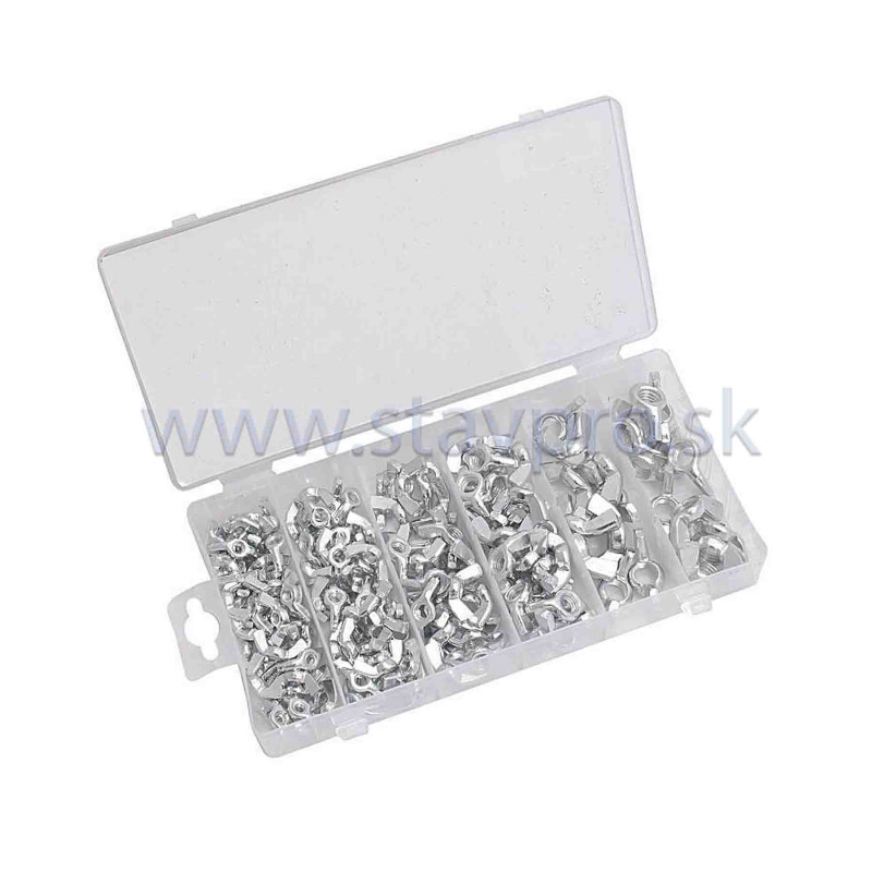 Sada krídlových matíc /DIN 315/ v praktickom plastovom kufríku. Sada obsahuje 150 matíc M3 - M10. Materiál: oceľ galvanicky pozinkovaná.