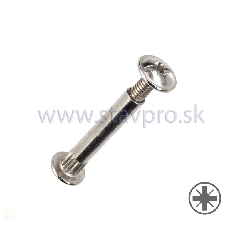 Spojovací článok JCNR - komplet je nábytkársky spojovací materiál, ktorý sa skladá zo skrutky a matice s metrickým závitom, obe s plochou hlavou a kombinovanou drážkou Pozidrive (Pz) + rovná drážka (slot). Používa sa na pevné spojenie nábytkových dielov, najmä korpusov skríň, políc a iných drevených alebo drevotrieskových konštrukcií, kde je dôležitá estetika a pevnosť spoja.