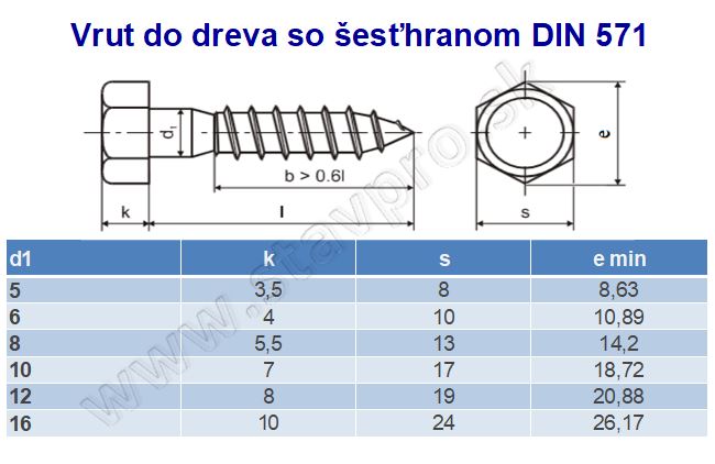 Vrut do dreva so šesťhranom DIN 571 A2 je robustný spojovací prvok vyrobený z nehrdzavejúcej ocele A2 (AISI 304), určený na spoľahlivé upevnenie do drevených materiálov. Šesťhranná hlava umožňuje jednoduchú montáž a demontáž pomocou kľúča, zatiaľ čo závit je optimalizovaný pre drevo.